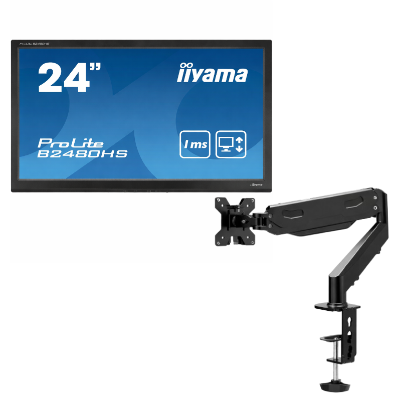 Le pack IIyama ProLite B2480HS 24 pouces est une solution idéale pour un espace de travail ergonomique et performant, livré avec un bras articulé pour un confort optimal.